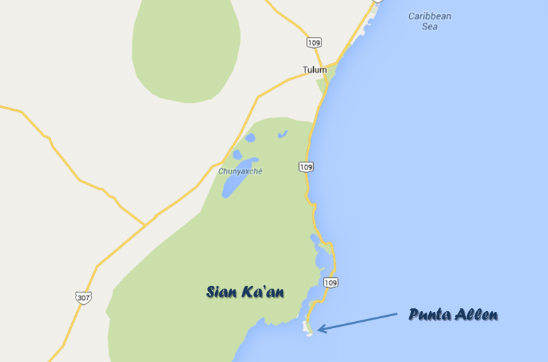 El recorrido desde Tulum hasta Punta Allen dura cerca de 2 horas ya que sólo hay un camino y, por razones de conservación (me imagino), no está asfaltado. Llegando a Punta Allen toca subirte a un bote/lancha (como quieran llamarle) y se emprende camino para buscar a las tortugas y a los delfines. Sean pacientes! ya que ni las tortugas ni los delfines están esperando a los visitantes. El guía decidirá a lo largo del camino si se continúa con la búsqueda o si visitan algún otro sitio.