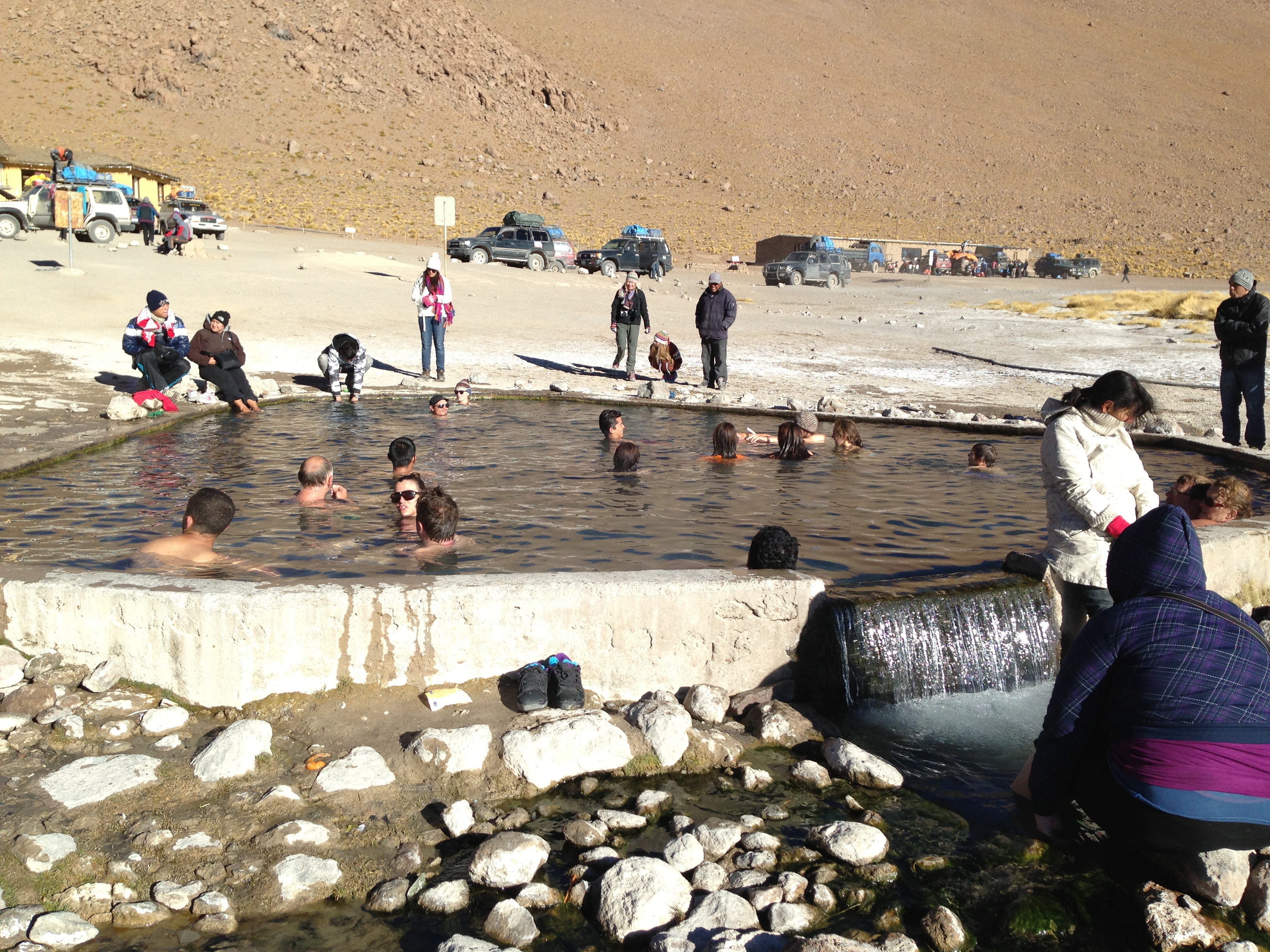 En nuestro último día salimos muy temprano de nuestro refugio para poder ver los geysers en todo su esplendor. La verdad yo nunca había visto vapor saliendo del suelo, y aunque los geysers que vimos no eran de gran tamaño pues resulta intrigante y sorprendente cómo la naturaleza hace este tipo de curiosidades. Una vez escuché que la ignorancia hace que la gente no le tema a lo que no conoce y en este lugar literalmente lo pude comprobar: al descender de la camioneta comenzamos a caminar entre los hoyos humeantes… vaya sorpresa al percatarnos de que había un par de letreros con leyendas como “DANGER” “Peligro, NO acercarse”… por fortuna nadie salió herido jeje.